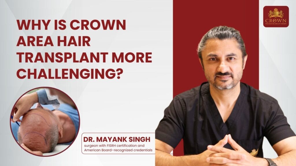 According to Dr. Mayank Singh, FUT hair transplant and FUE procedures in the crown area require a fundamentally different planning framework from frontal hairline work. He explains that the crown presents three simultaneous challenges that do not occur together in any other area of the scalp which is precisely why surgical experience and long-term planning matter significantly more here than elsewhere.